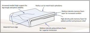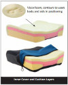 The Prism Supreme Cushion TM was designed for users requiring moderate to high positioning support and provides excellent pressure distribution relief. The anatomically designed firm polyurethane base, with its aggressive leg troughs and abductor contouring, provides superior pelvic stability and leg positioning. A central core of pressure relieving visco-elastic insert under the IT's, allows for excellent immersion for bony prominences. Supreme comfort, supreme positioning and