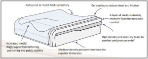 The Prism Supreme Gel TM Cushion was designed for users requiring mild to moderate positioning support and provides excellent pressure distribution relief. The gel overlay reduces shear and friction that contributes to skin breakdown, while the anatomically designed firm polyurethane base provides superior pelvic stability and leg positioning. A central core of pressure relieving visco-elastic insert under the IT's, allows for excellent immersion for bony prominences.